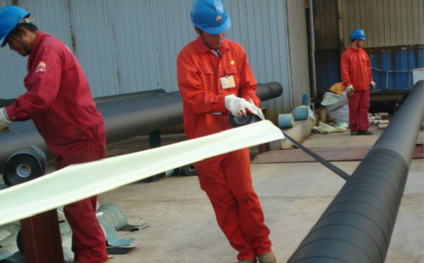 2.有的聚丙烯防腐膠帶制造商為降低產品成本,丁基橡膠改性石油瀝青膠粘劑中的橡膠成分含量低或是選用了熱塑丁苯橡膠(SBS),以及選用的石油瀝青的牌號小,其針汋度低,從而制成的膠粘劑耐溫性差,并易造成脆化脫膠。