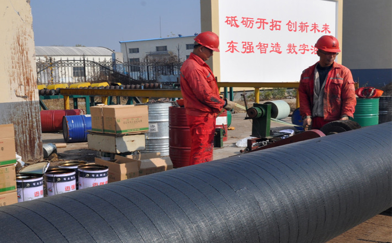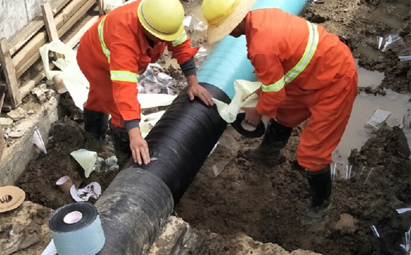 選用聚丙烯防腐膠粘帶做抗機械應力保護層時可無需底漆,以軸向搭接帶寬度≥50%繞纏,兩端包覆柔性防腐層各≥50mm,繞帶操作方法同上。